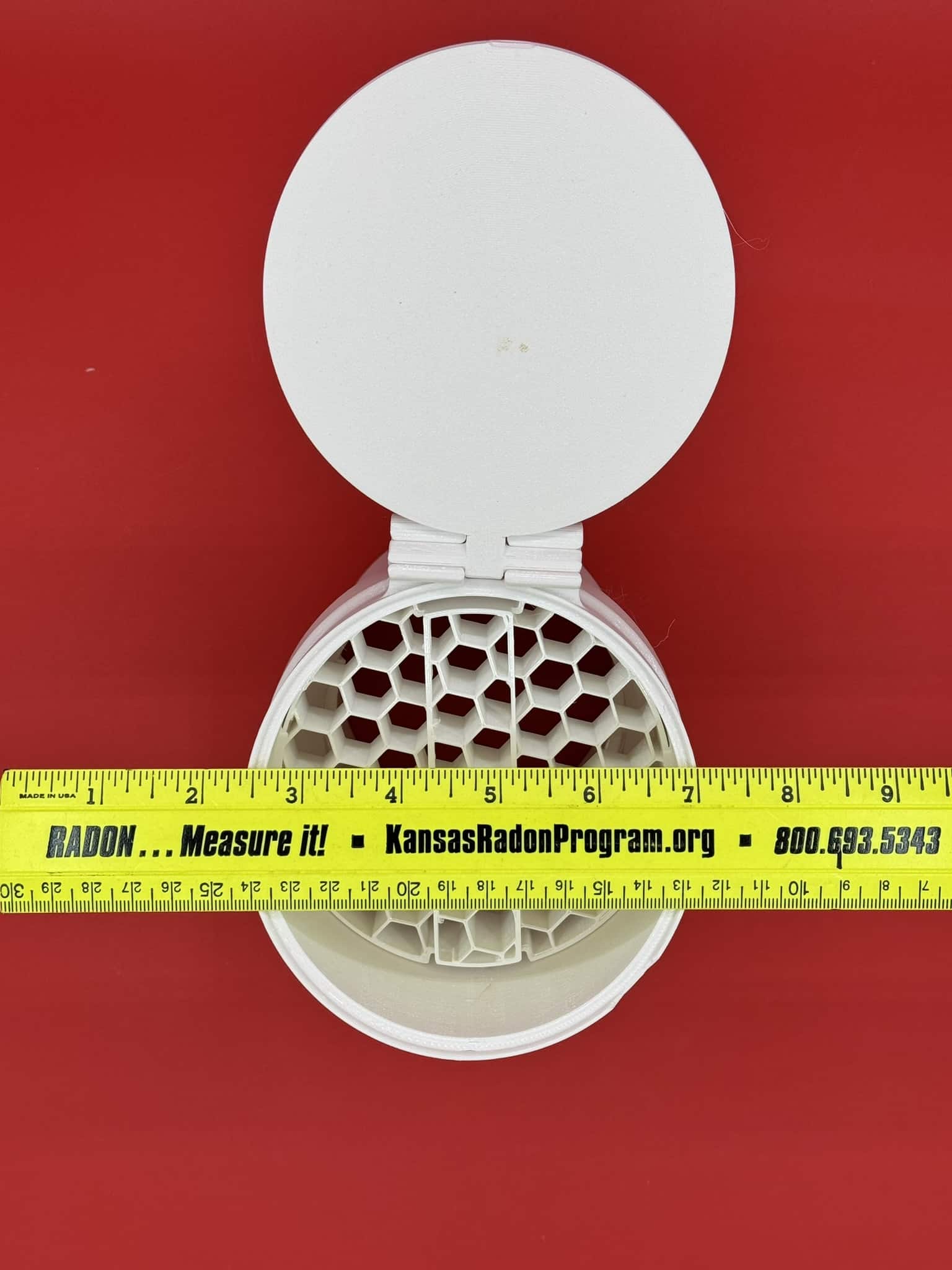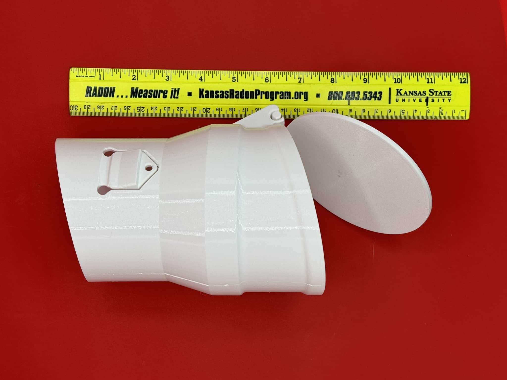 Manufactured in USA. The Alpha86 CAD designed Drain check allow perimeter “french drains to daylight”maintain pressure field for a radon system while allowing water to exit. Installed horizontally at the day light terminus of a french drain.