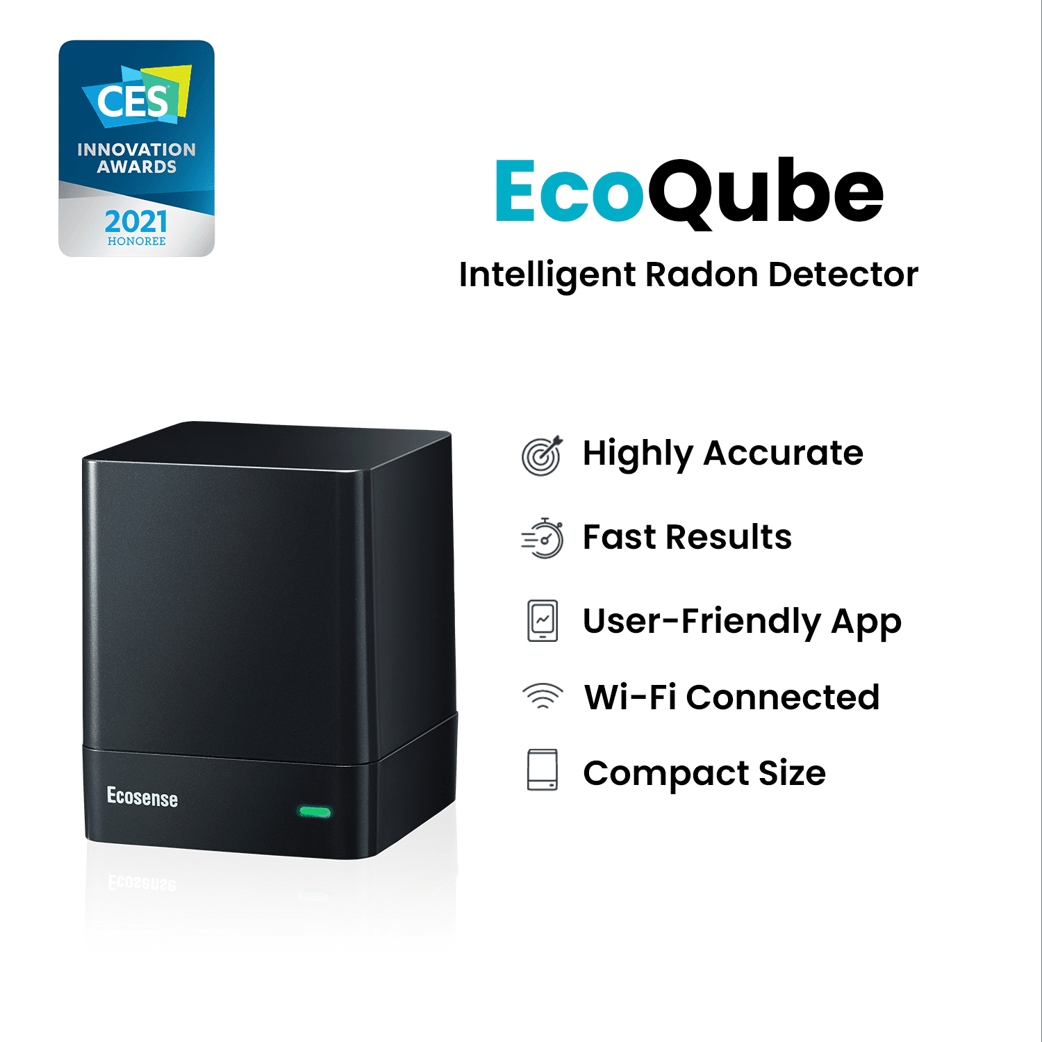 Real time radon monitoring for your home with the EcoQube EQ100 by Ecosense. This continuous radon monitor (CRM) features WiFi connectivity and a dedicated iOS or android app. View your home’s radon levels anywhere with an internet connection! Radon readings taken every ten minutes. One of the most accurate radon testing brands in the world according to the University of Michigan (Michigan Study for RadonEye